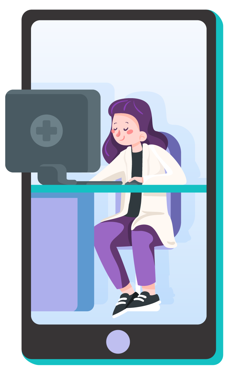 Médico na palma da sua mão 24h por dia, 7 dias por semana.